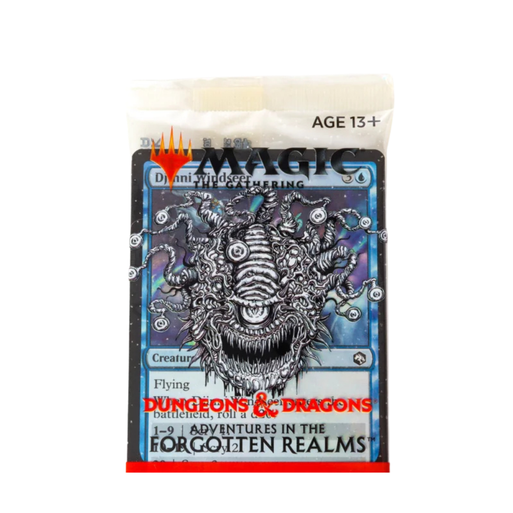 This Collector Booster Display for Magic: The Gathering – Adventures in the Forgotten Realms is a unique collectible due to its misprinted transparent booster packaging.