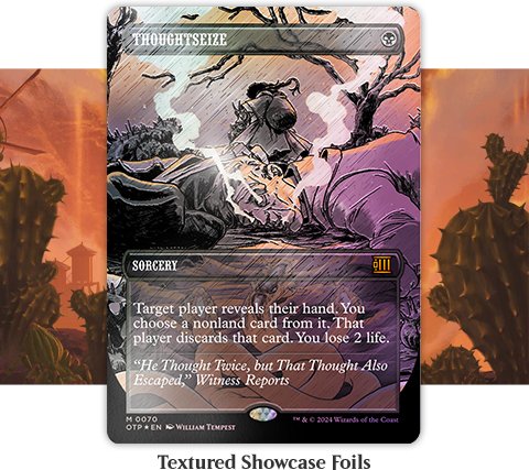 Welkom op Thunder Junction, het wilde westen van Magic: the Gathering! Deze nieuwe plane bevat ongekende rijkdommen, diep weggestopt in ontembare landschappen. Het gerucht over een eeuwenoude kluis vol machtige schatten trekt schurken vanuit de hele multiverse naar Thunder Junction. Oko en zijn bende bandieten zijn wanted dead or alive en beramen de overval van de eeuw in deze magische twist op de klassieke western!