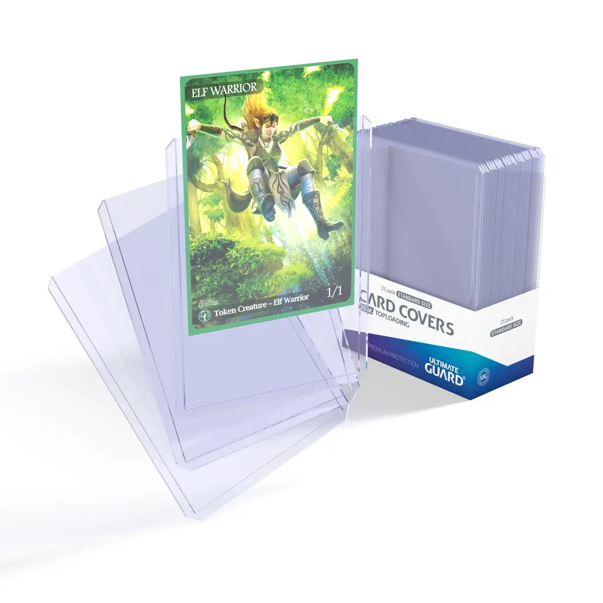 Het zijn stevige, transparante hoesjes van duurzaam plastic, bedoeld om kaarten te beschermen, en ze worden geleverd in een verpakking van 25 stuks. Deze toploaders zijn geschikt voor losse kaarten of kaarten in sleeves om ze te beschermen bij opslag of verzending.